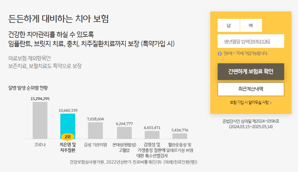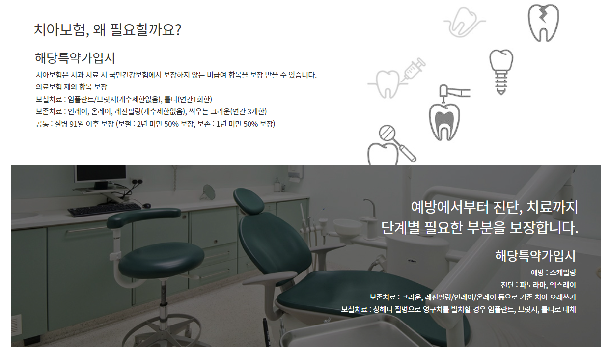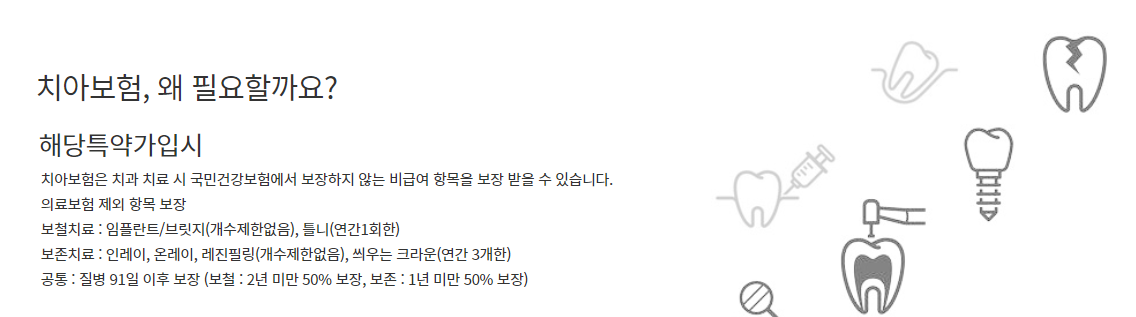 • 보존 치료 : 충치 치료와 같은 기본적인 치료비를 보장합니다.